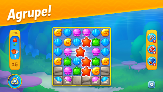 Quer adicionar os peixes e elementos decorativos? Basta comprá-los usando as moedas que o jogo lhe oferece após concluir os quebra-cabeças que vão surgir do lado direto da tela. Resolva todos para ganhar as recompensas, se usar menos movimentos para resolver, mais dinheiro você ganhará, o que é bem interessante para investir no seu aquário. Para completar as tarefas, basta fazer a combinação de 3 ou mais elementos da mesma cor para obter um numero específico de pontos.